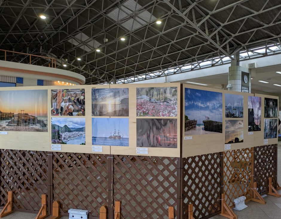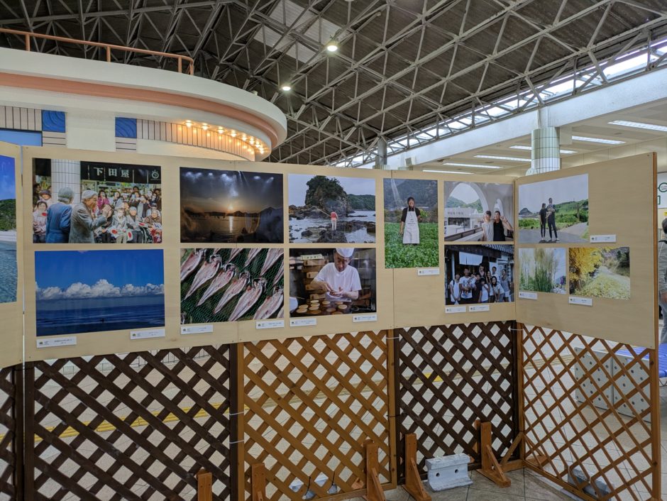 伊豆急下田駅改札口に展示された写真の数々。