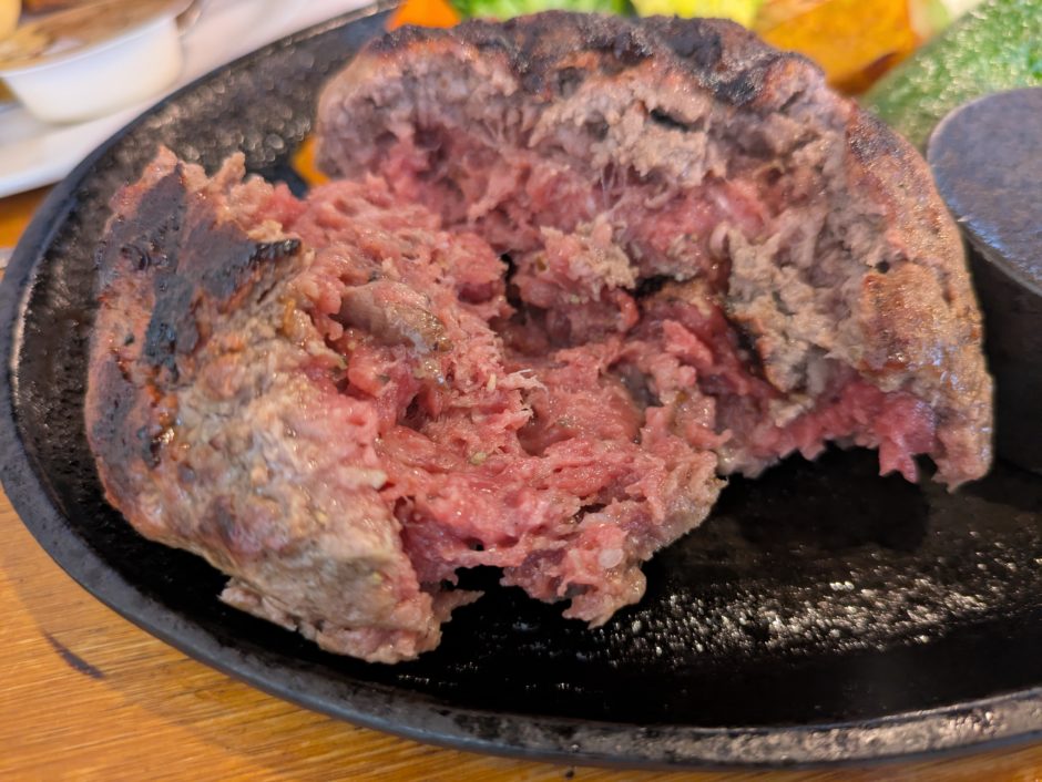 自分好みに追い焼きできる「粗挽き炭火焼きハンバーグ」