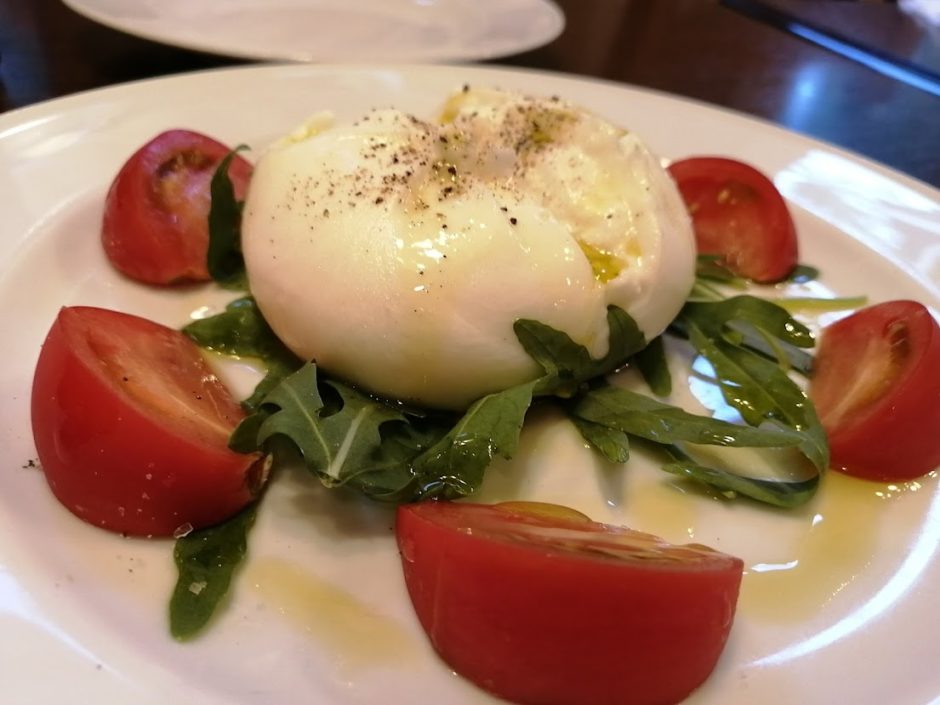 ■ブッラータ(生クリーム入りモッツァレラ)のトマトとルッコラ添え